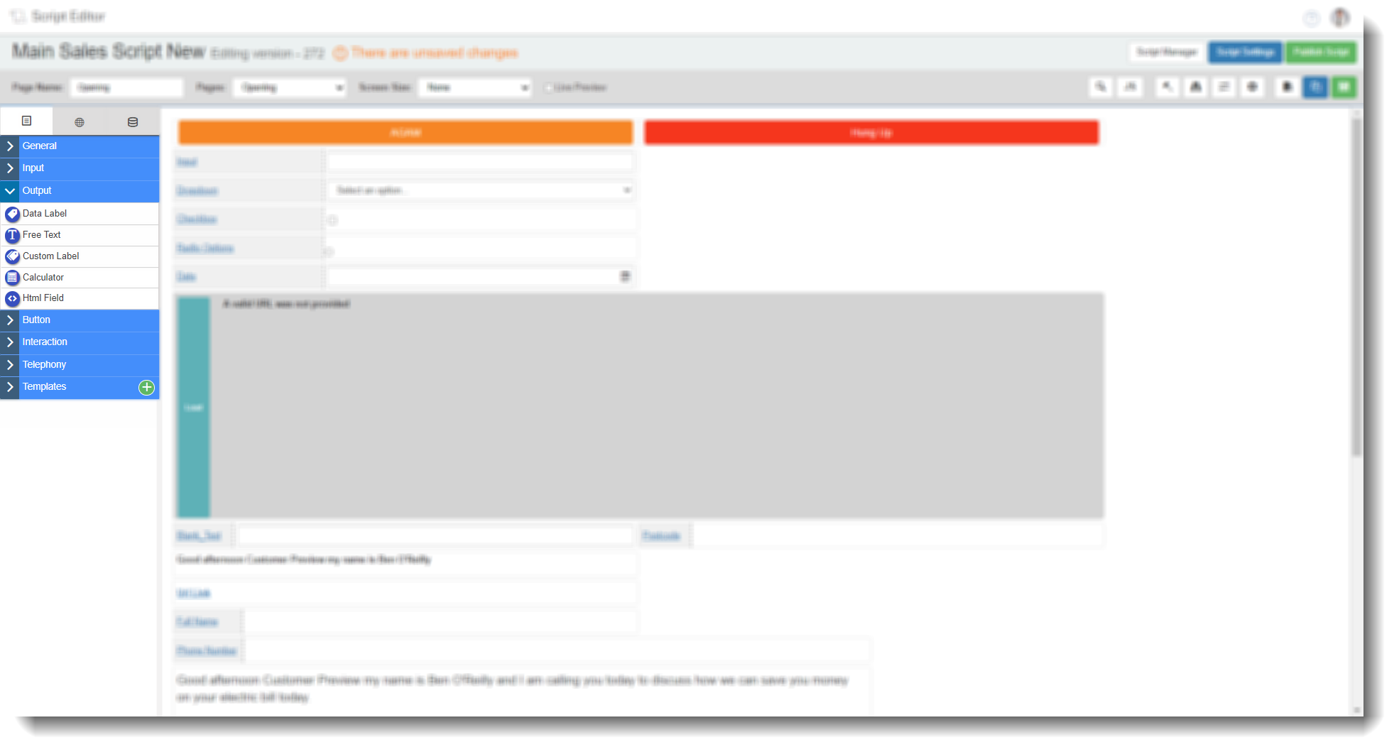 Allows you to add free text onto the script which can include fill-points containing data such as customer names, details of appointment dates set via the script etc.