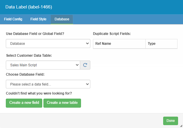 Select Customer Data Table – Here, you can select which secondary database to reference. This allows you to select the database table you wish to link the field to.