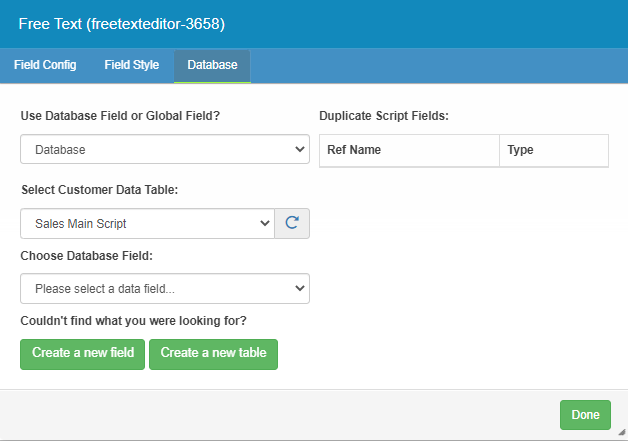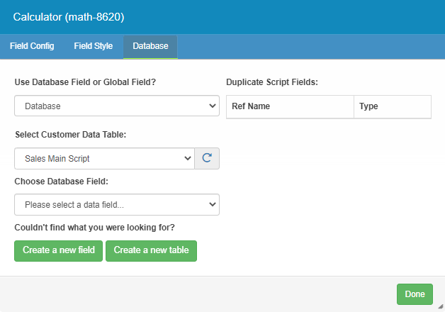 Choose Database Field – Allows, you to select the field they wish to link to this Script field