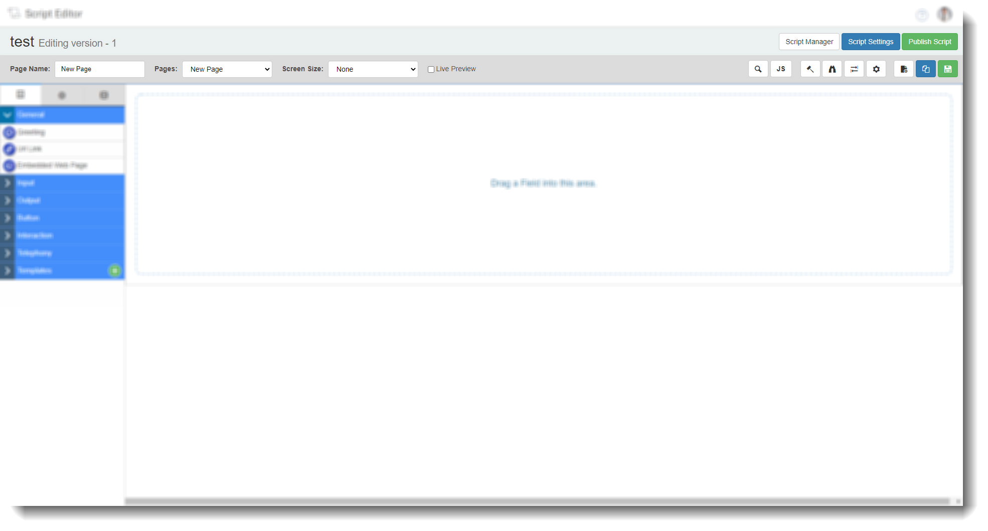 | Live preview | Checking this box will show you how the final script will look on screen, including all the functionality of the script (rules, navigation buttons etc). You can combine this with a screen size option for a better preview experience.![]() |