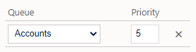Queue Routing Add Queue - Clicking this will produce a drop-down where you can select a queue. You can add more than one queue and can set a priority out of 10 for each queue, 1 being the lowest and 10 being the highest priority.