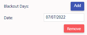 Blackout Days - Clicking this will allow you to add another date to the element (Max 7 per element).