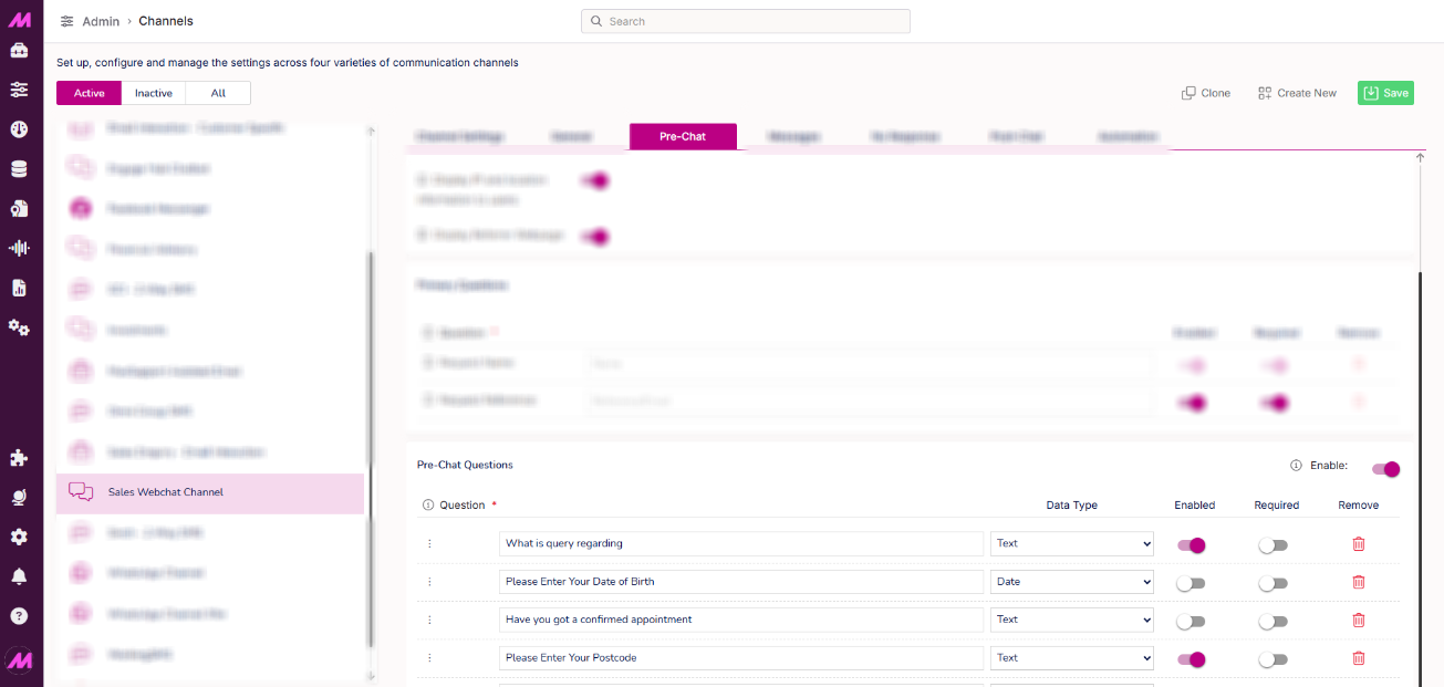 - The questions can be marked as required which will require the customer to enter something in their input field before they can start the chat.