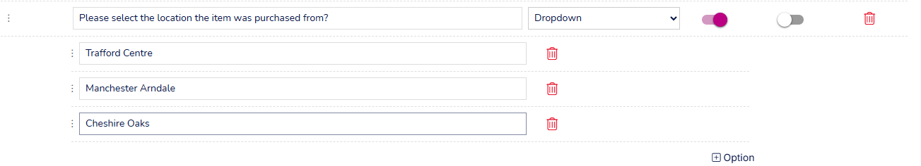 - Dropdown - adds a + option button to give the choices for the dropdown.
