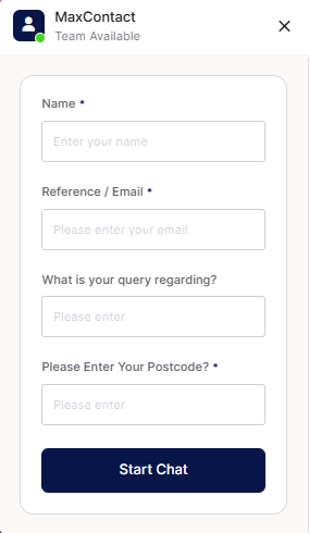 The customer will see the questions before entering chat with an agent. If validation is selected, they will have to answer before being allowed to select 'Chat now'.