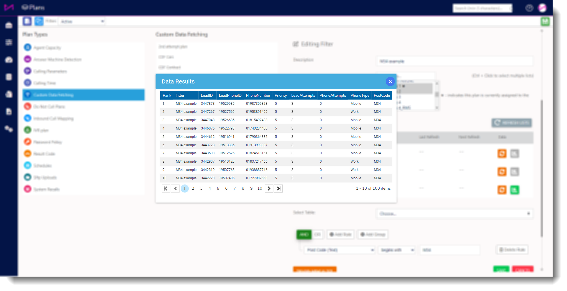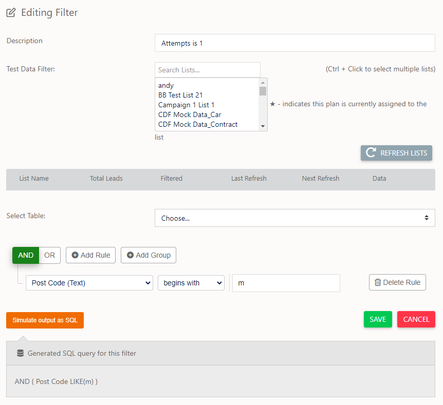 1. I can filter my data to dial certain postcodes as my sales team are working in specific areas this week and I want to book their appointments in those areas.
