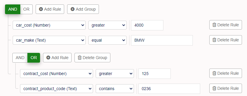 When the ‘Enable Data Filter’ setting is switched on you can create the different queries that filter the data.