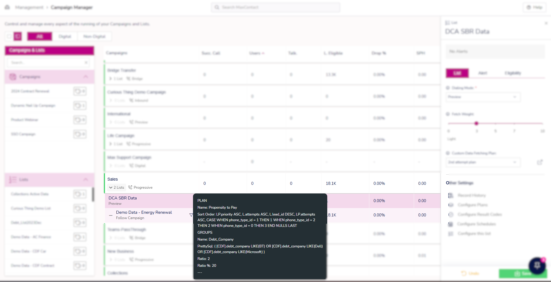 - This will require the plan to have been saved and assigned to the list that you want to sample.