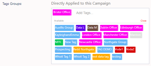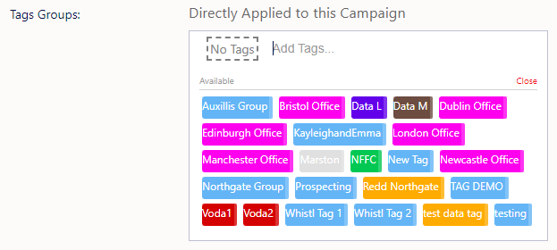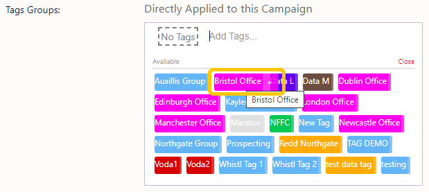 On the editing tab for the campaign there is the ‘Tag Groups:’ box.