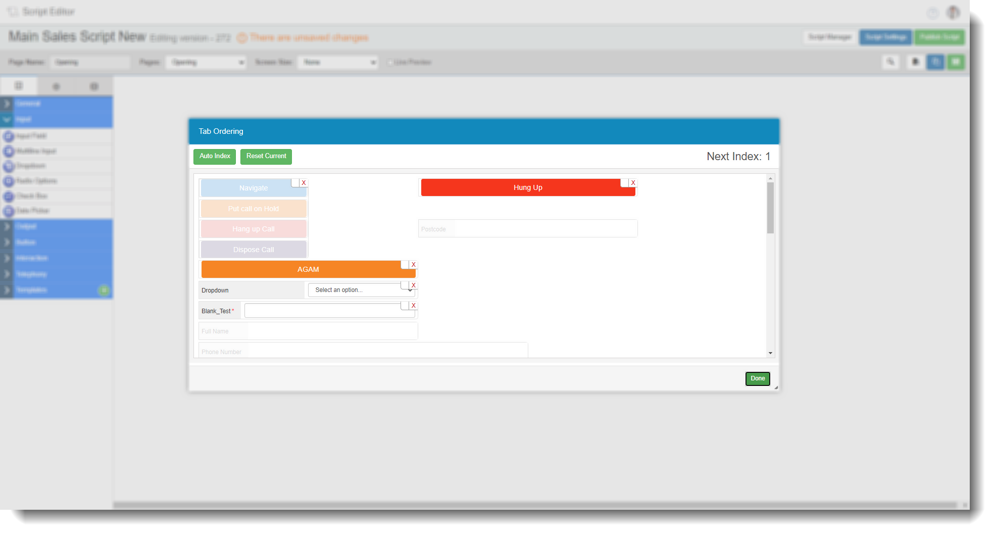 Click on the Tab Ordering button in the top right of the menu bar