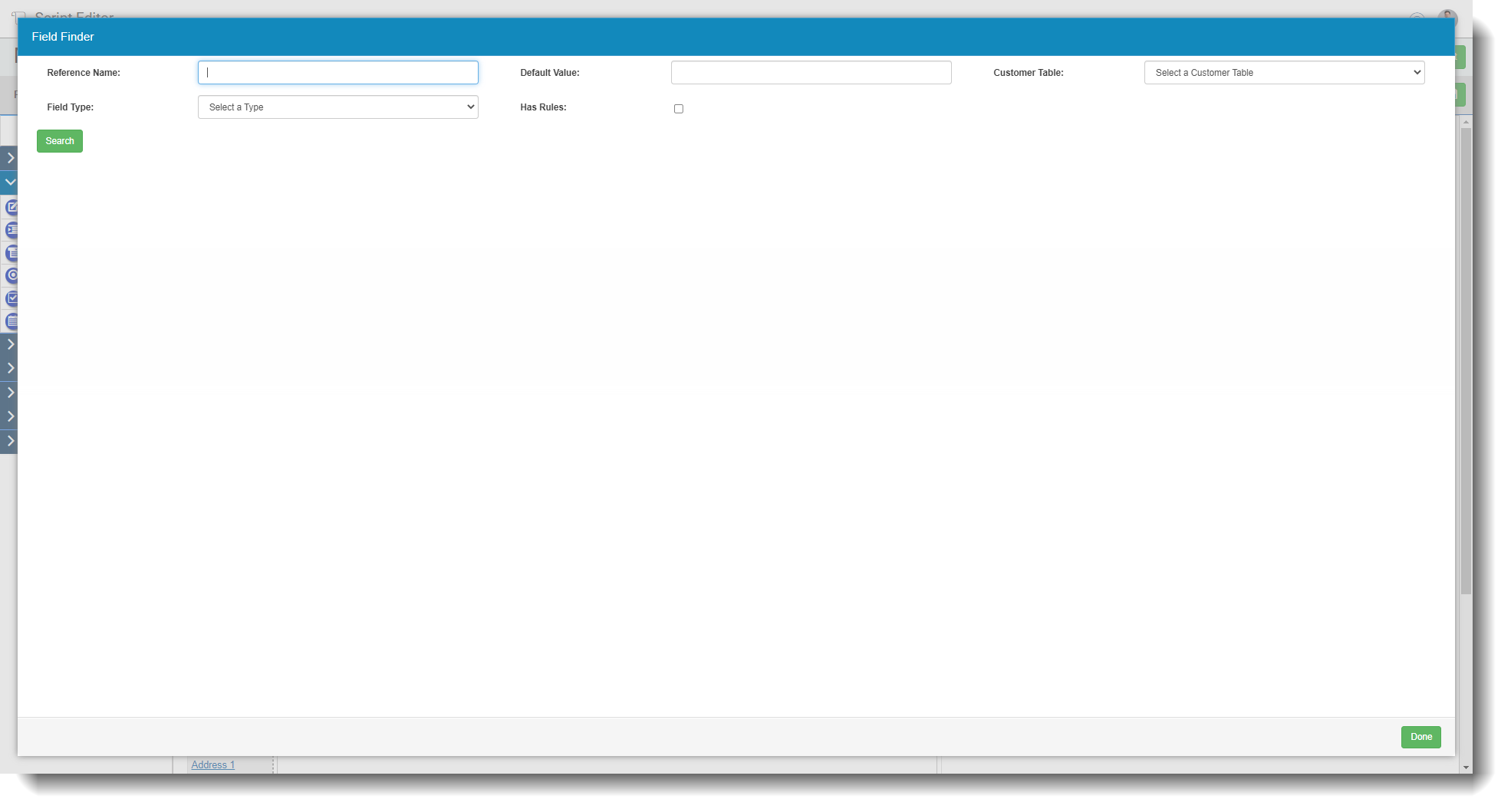 - Customer Field - This will show if a table is selected above, you can then choose a specific database field and script field would be mapped to