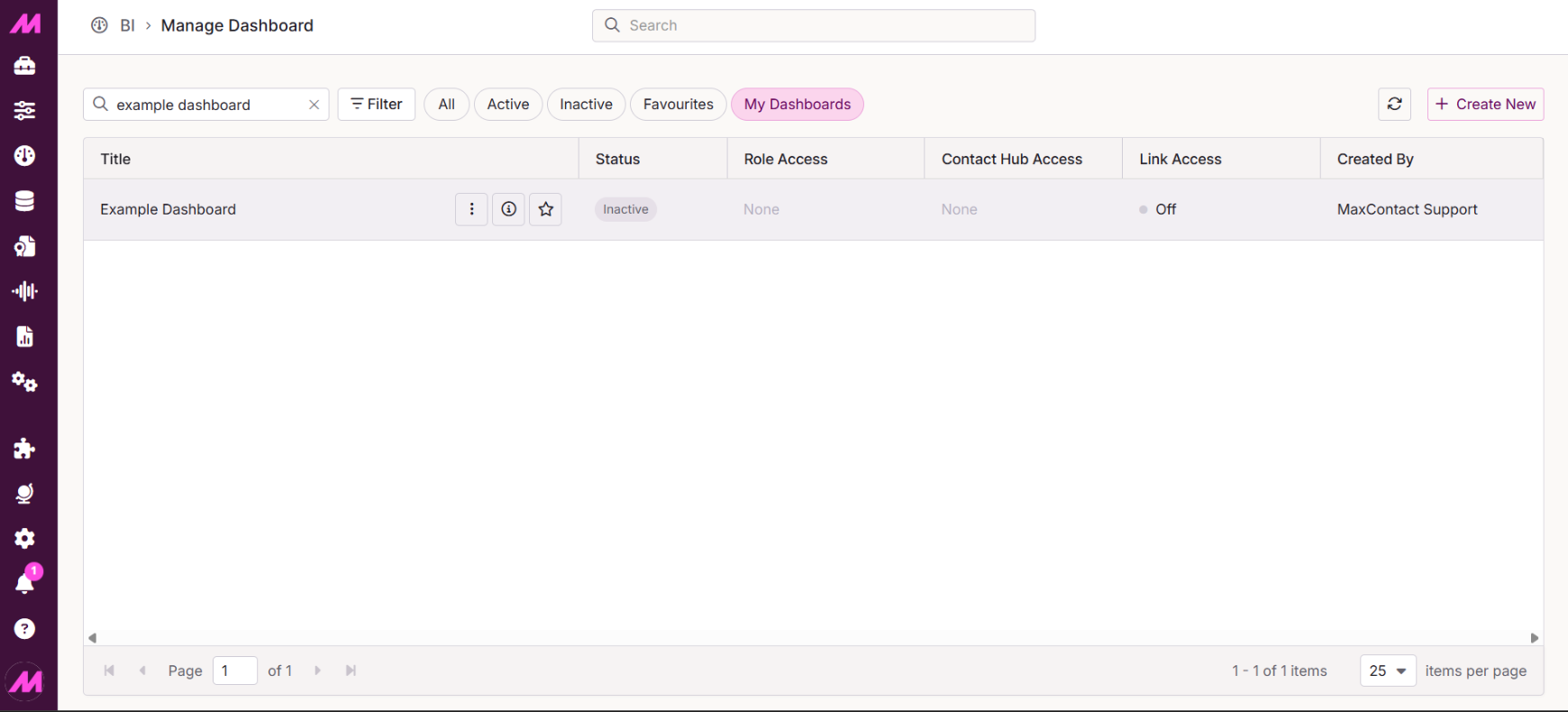 Once you have finished designing your dashboard and saved it, you can manage and publish it directly from the Dashboard Management grid.