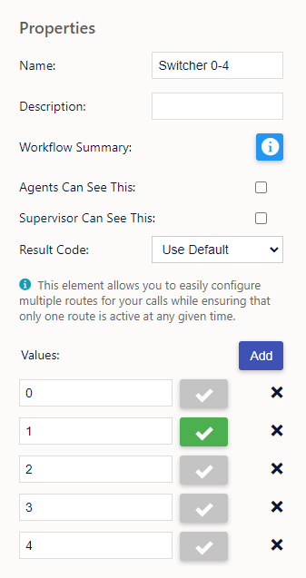 Next you have the values you are able to create up to 10 values 0-9 per switcher element these will become your node/pathways on the element itself.