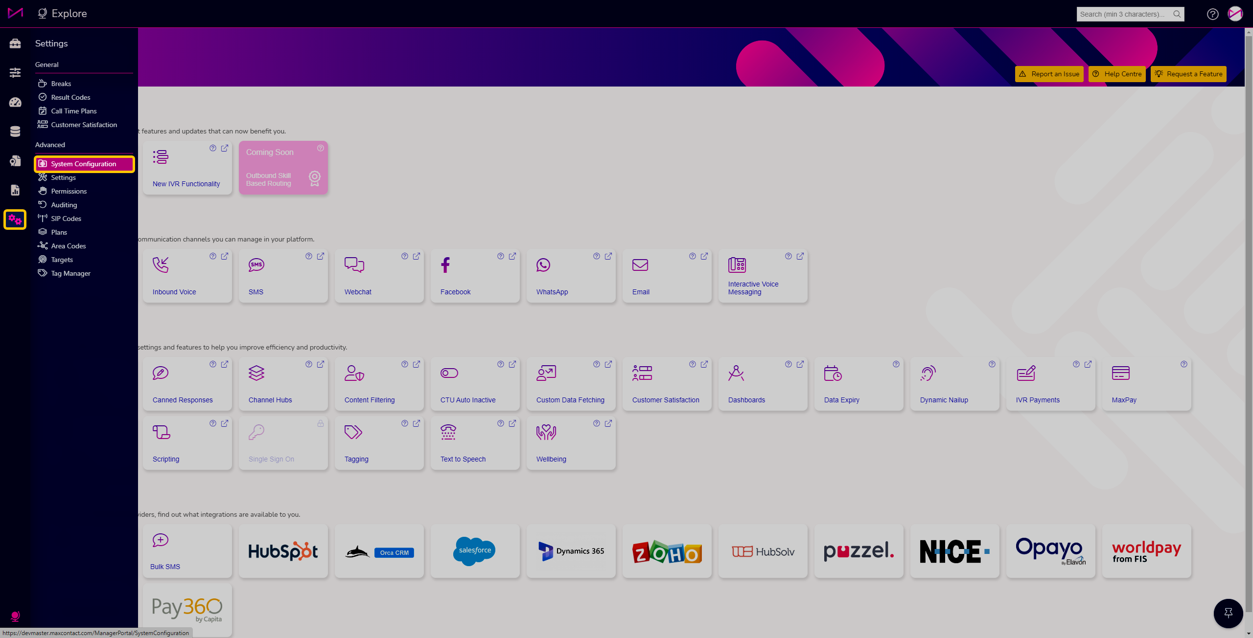 Once the feature has been initialised on your system, you will have access to the System Configuration page.