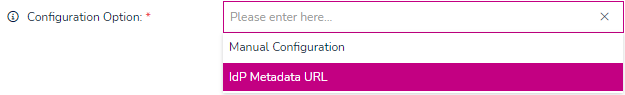| Configuration Option - Select how you will be configuring your Service Provider Metadata. | ![]() |