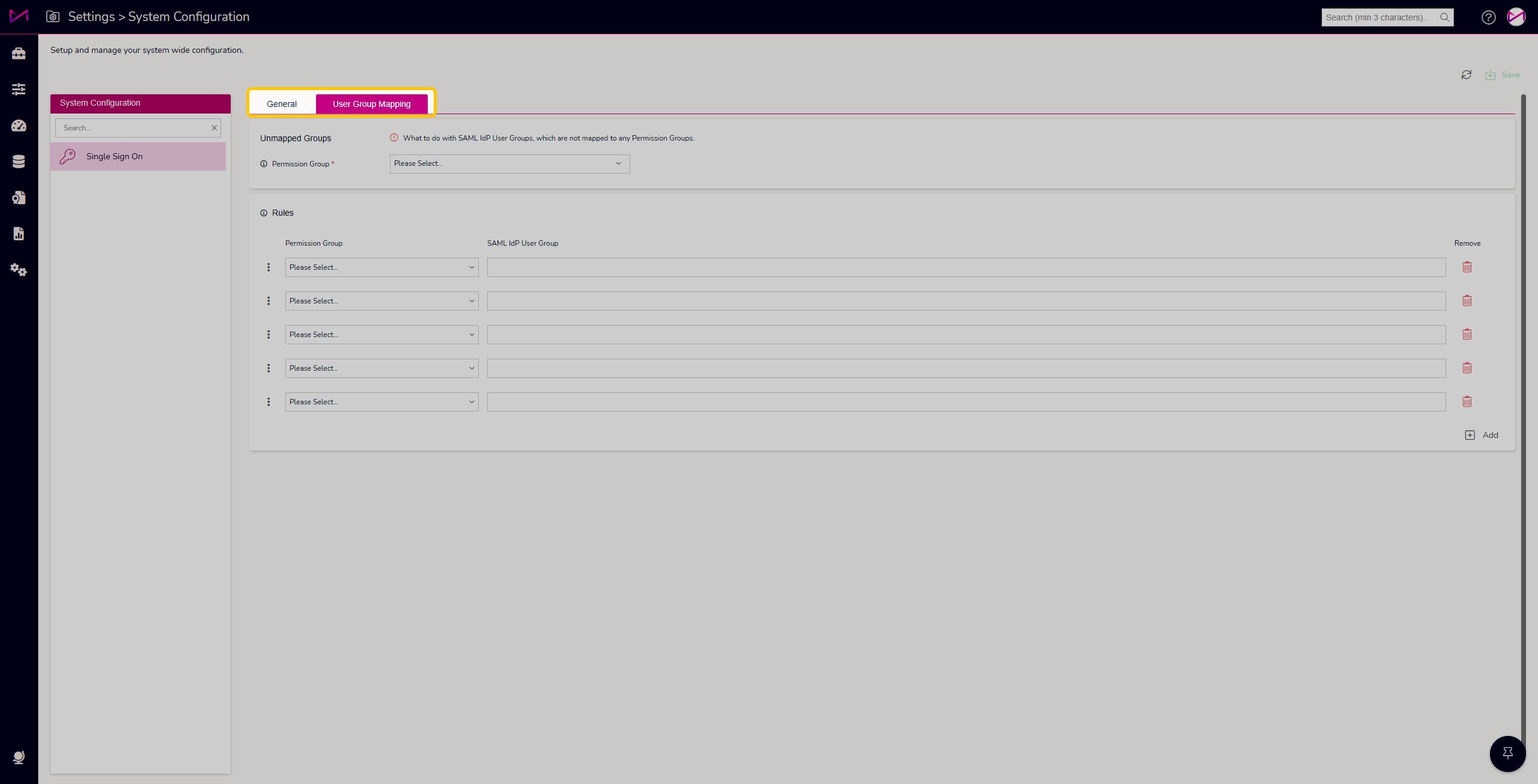 User Group Mapping tab