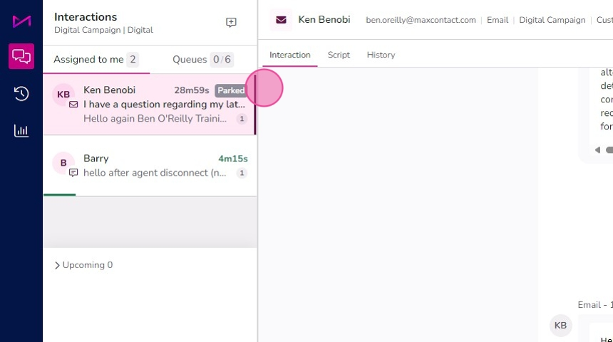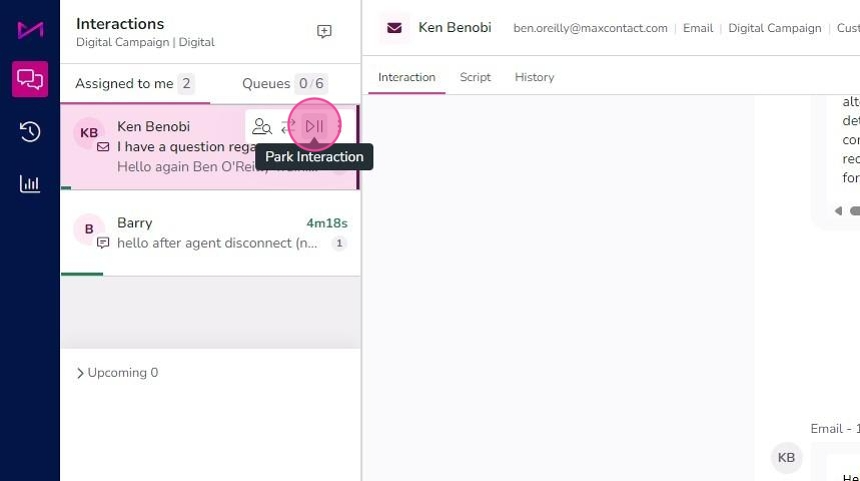 Tip: - Parking an interaction means SLA's will be paused.
