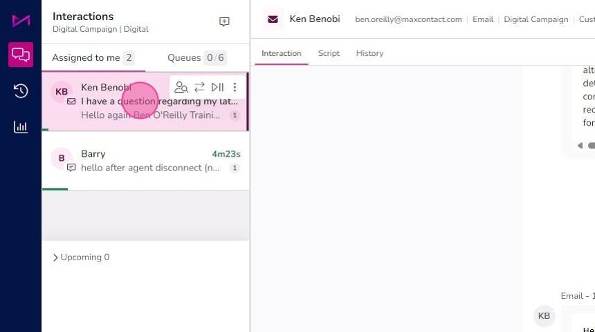 1. Hovering over an interaction will display the actions buttons.