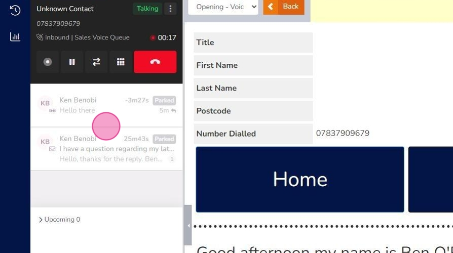 If agents receive an interaction that requires further work away from the screen E.g. they need to speak to a manager/3rd party or undertake a lengthy process elsewhere, they can park the interaction to do so.