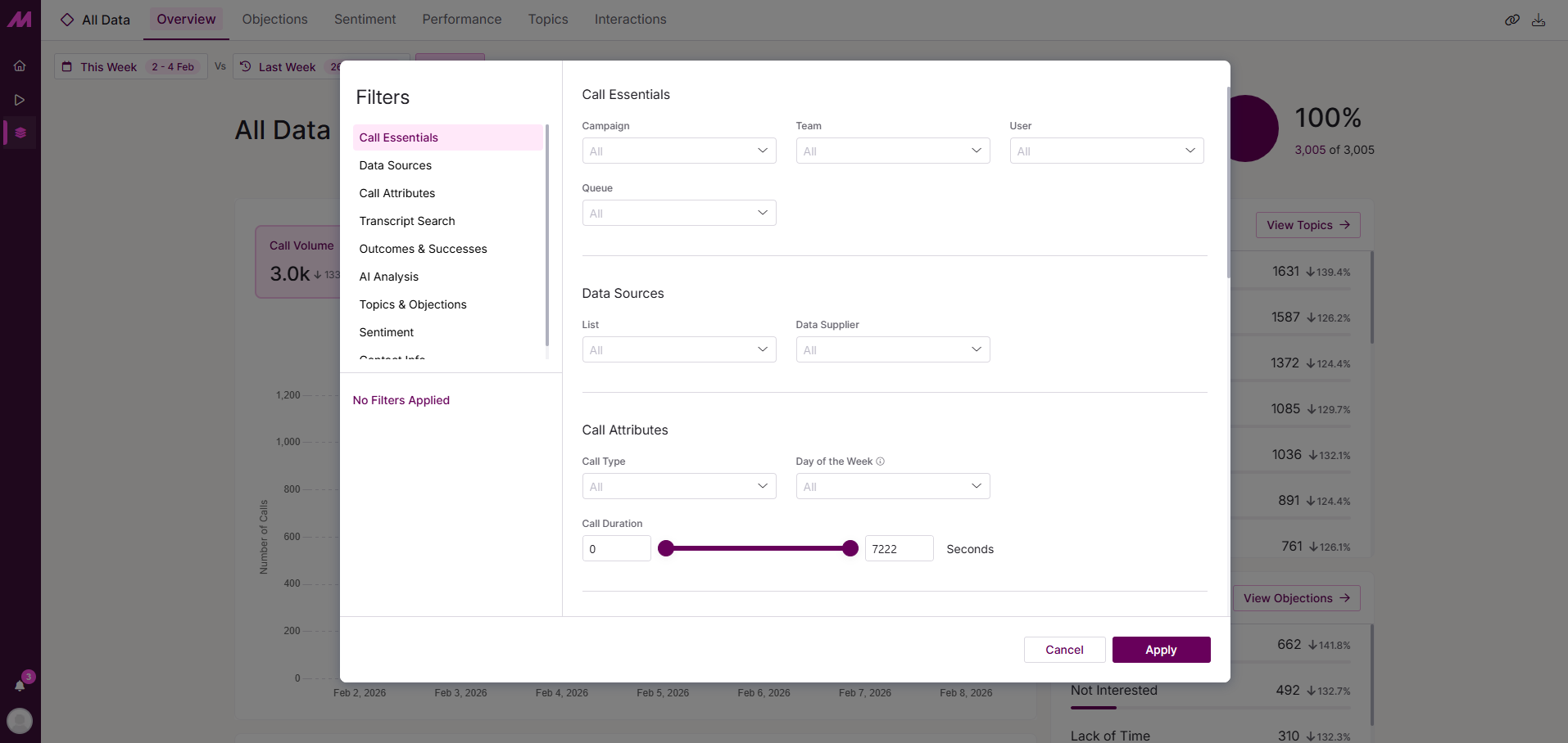 This guide provides essential insights into effectively utilising Conversation Analytics Filters for data analysis, allowing users to tailor their view of call data through various filters such as time periods, campaigns, and interaction outcomes. By offering options for both full and partial period comparisons, it enables users to assess real-time progress and historical performance accurately.