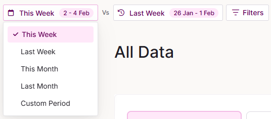 Tip: The period comparison filter lets you choose how you want to compare data for a time period that isn’t fully complete yet (like the current week):