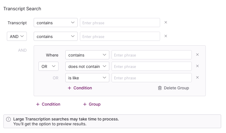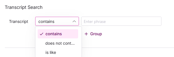 You can search within the call transcripts for specific words or phrases that are in/not in or similar to your search.