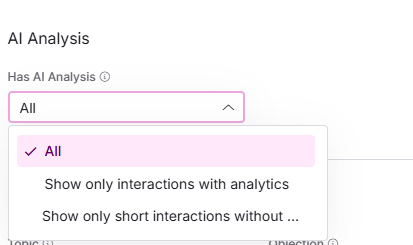 Dominant = Filter interactions by the overall sentiment of the call.