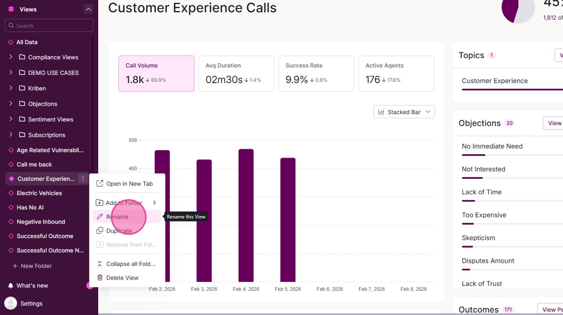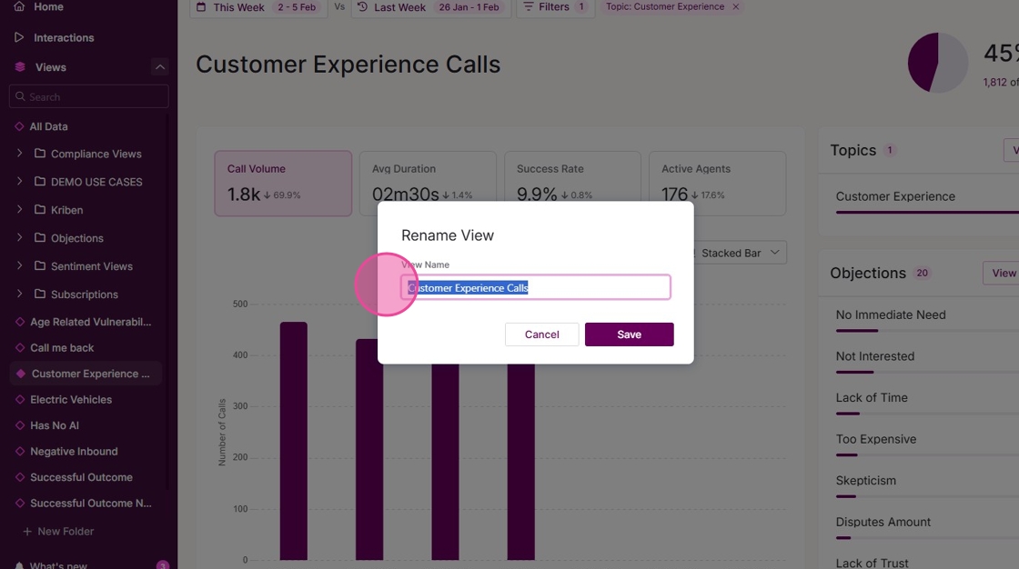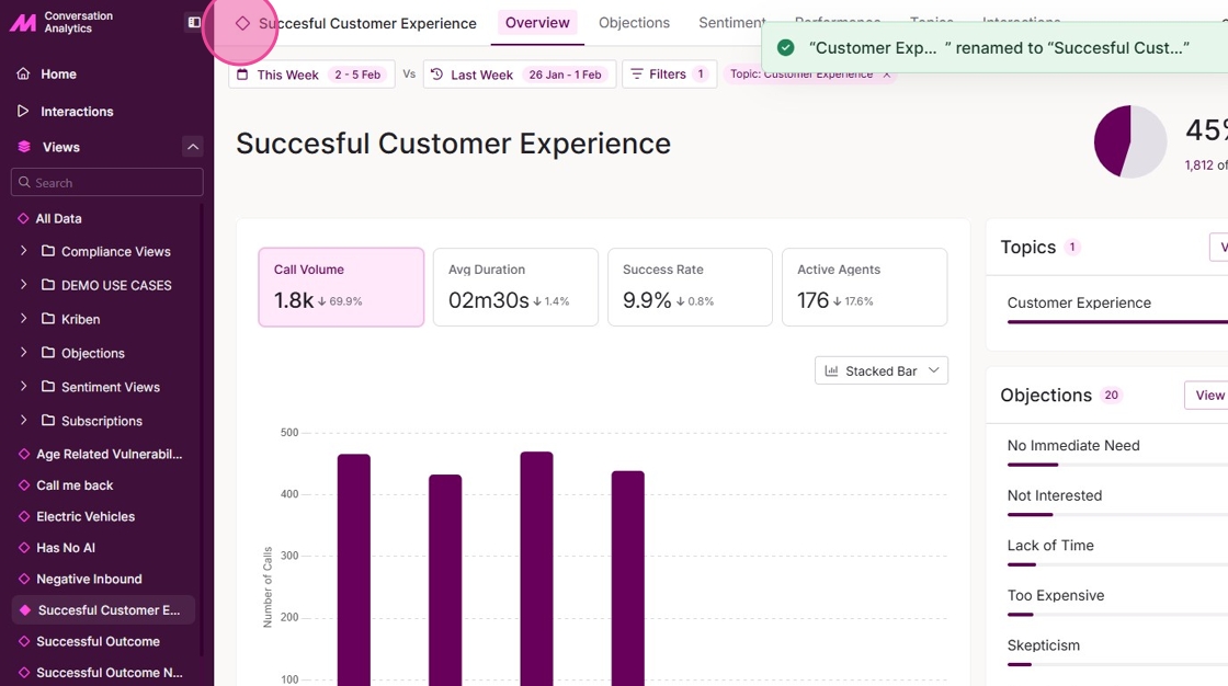 This guide shows you how to update and rename views within Conversation Analytics. Allowing you to easily manage and organise the views utilised in your day-to-day operations.