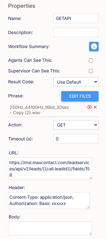 https://domain.maxcontact.com/leadservices/api/v2/leads/{{call.leadid}}/fields/fieldvalueBreaking this down:
