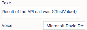 So with the example above, our TTS fillpoint would be formatted as the below. With the name of the API element first, followed by Result and then the name from the body that we wish to be read out.