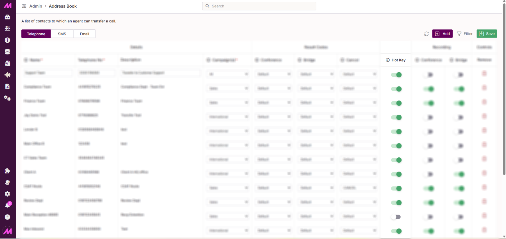 If this entry should be set up as a Hot Key transfer, enable the Hot Key toggle. When enabled, the Bridge part of the call will be assigned the call type Hot Key rather than Address Book.